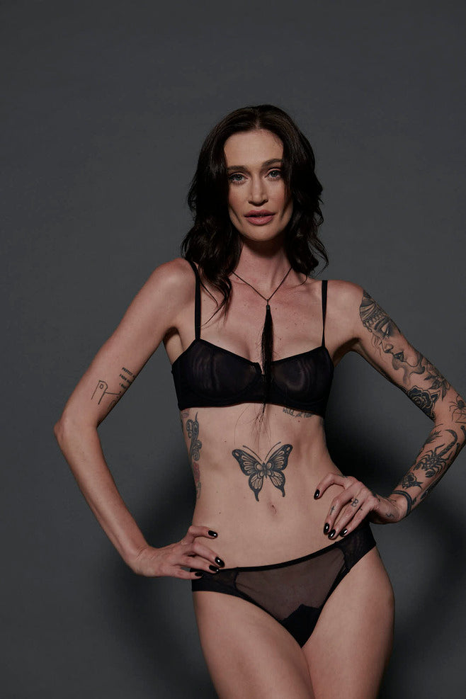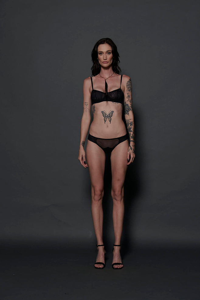 Calcinha fio de tule é uma peça íntima leve e delicada, confeccionada em tule transparente, proporcionando uma sensação de suavidade e frescor ao toque. O design fio-dental, com tiras médias nas laterais, é minimalista e discreto, perfeito para quem busca conforto.